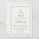 Convite Barco à Vela Desenhado à Mão Azul Marfim Casamento