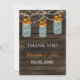 Rustic Barnwood, luzes de cordas balançando com folhas de queda num casamento de jarro de pedras Obrigado Cartões Flat. Produtos correspondentes também disponíveis.