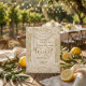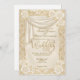 Create a timeless atmosphere for your special day with this elegant vintage design suite. The layout features illustrated ivory blooms, a printed beige diamond pattern, and intricate faux gold foil scrollwork for a sophisticated look. Easy to customize with your formal ceremony details.