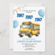 Ônibus Escolar EDITABLE Transformando Dois Dois Dois Dois Segundo Convite de Aniversário Elegante O Toddler no Ônibus, Convite de Aniversário Amarelo As Rodas no Partido do segundo aniversário de Ônibus