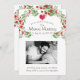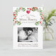 Um convite de chuveiro de bebê em forma de coração floral com um tipo manuscrito fofo e foto de gravidez personalizada com a gestante e o pai sentindo a barriga. Personalize com sua própria foto e informações. Flores vermelhas e verdes e um coração vermelho.