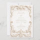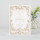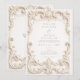 Anuncie sua ocasião alegre com este convite de casamento requintado, apresentando uma rica tonalidade marfim e detalhes barrocos intrincados. O trabalho de enrolamento ornamentado e os delicados acentos de pérola evocam um sentimento de romance atemporal e charme sofisticado, perfeito para uma celebração clássica e elegante. Este convite estabelece um tom luxuoso para o seu dia especial, sugerindo a beleza e a grandiosidade que aguarda os seus convidados. Este convite de casamento deslumbrante exibe uma cor marfim luxuosa e um design de enrolamento falso relevado. A floreira e o trabalho de filigrana e os acentos de pérola sutis criam uma experiência visualmente cativante, fazendo uma declaração grandiosa e elegante para o seu casamento. É a maneira perfeita de transmitir a elegância e a natureza memorável do seu casamento próximo. Perfeito para o