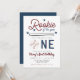 Este prêmio de aniversário do primeiro ano apresenta estrelas azuis, fontes vermelhas e gráficos temáticos de beisebol. Este convite é a adição perfeita ao seu evento de festa de primeiro aniversario temido de baseball.