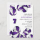 Este convite de festas temático de basquete para um aniversário ou grupo apresenta grupos de bolas de basquete roxas e brancas nas bordas superior e inferior do cluster de solteiros que cobre a parte de trás do convite - personalize os detalhes da festa em um fundo branco - por katz_d_zynes