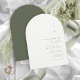O convite de casamento minimalista em forma de arco, mostrado aqui em musgo branco pérola e escuro, tem um sotaque minúsculo em forma de estrela e um modelo para adicionar facilmente seus detalhes de evento. Como parte de uma suíte de casamentos chic com uma paleta colorida inspirada na natureza e design minimalista, ela tem um aspecto eterno e sofisticado que impressionará seus convidados e ajudará a tornar seu dia especial inesquecível. Procure ID1046 para ver todos os produtos nesta suíte de casamento.