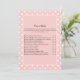 Celebre e jogue este jogo do Over ou under chá de fraldas com este design de tema rosa feminino. Fundo branco polka-ponto na frente e simples, arco bonitinho nas costas. Modelos criaram por você atrás.