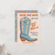 Salve a data da bota ocidental do Cowboy com fontes divertidas e uma vibração retroativa mod. Possui uma bota de vaqueiro com cores esmeradas de pinks, laranja, azul e muito leve toque cremoso de branco-pinto. Perfeito para um país de vaqueiro, o temido oeste Bat Mitzvah! Todos os textos podem ser alterados, exceto os termos "tornar-se um bat mitzvah", mas podem ser suprimidos. Mão desenhada por McBooboos. Para fazer mais mudanças, vá para Personalizar este modelo. Na parte inferior você verá "Quer personalizar este design ainda mais? Clique em EDIT usando a ferramenta Design. Será necessário algum aprendizado, mas você pode mudar algumas das fontes e algumas cores, mover as coisas ou excluir o que você precisa. Você vai pegar o jeito disso.