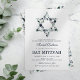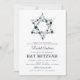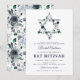 Convite de celebração de mitzvah elegante com um fundo branco simples que pode ser alterado para qualquer cor, uma estrela de davi floral em aquarela azul e um modelo de bat mitzvah moderno que é fácil de personalizar.