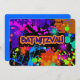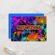 Bonito, néon brilhante a preto. Personalize com suas informações. Bat Mitzvah Invitation Colorful Neon Paint Splatter. A cor de fundo no verso pode ser alterada. Personalize com suas informações.
