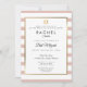 Com o clássico rosa dourado e fundo de listras brancas, este elegante convite do Bat Mitzvah apresenta uma elegante borda de folha de ouro falsa que enquadra seus detalhes em tipografia quic. Projetado por Thisnotme©