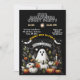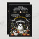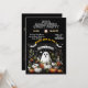 convite de festas de "espiar um BOO" chamando todos os fantasmas bonitos no Halloween. A ilustração tem elementos de Dia das Bruxas - Abóboras de queda, fantasmas brancos e morcegos na configuração do tema "BOO". Perfeito para personalizar com suas próprias palavras para um tema de bruxa e festa de fantasia. O lado inverso tem um tema para a festa do fantasma do Dia das Bruxas.