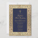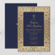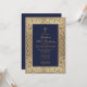 Convite Batismo 1º Aniversário Floral Dourado Azul Marinho