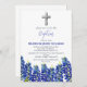 Boêmia, bluebonnets floral, azul empoeirado, moderno, roteiro, menino bebê, ouro e branco, religioso, convites de Natal. Dourada cruz, minimalista, convites para o Batismo Boho.