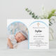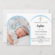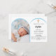 Adicione sua própria foto de tamanho vertical. Um pequeno arco azul colorido em forma de fotograma. Uma cor branca de fundo. Personalize e adicione um nome e detalhes.