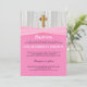 Convite Batismo bonito de Satin Rosa e Branco / Cristal