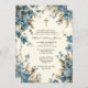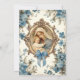 Com um convite de Batismo Batizado personalizado e lindo com flores azuis e uma linda Mãe Abençoada com moldura dourada segurando Jesus em seus braços. Todo o texto e fontes podem ser modificados.
