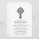 Um convite elegante para o batismo que ilustra uma cruz celta e uma simples tipografia moderna.