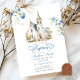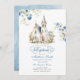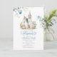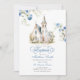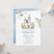 Convite Batismo Clássico Floral Azul Dusty
