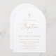 Celebre o dia especial do seu filho com este convite de Batismo com Arco de Letra Dourada Elegante atemporal. Com tipografia delicada, design minimalista e um sutil acento de cruz dourada, este convite traz um toque de graça e sofisticação para a sua celebração.