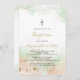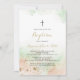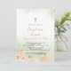 Este convite para o batismo do confete de ouro aquarela é perfeito para um batismo ou batizante de bebê rústico. O design apresenta um fundo cor-de-água rosa, verde e branco com abertura de confete com brilho dourado.