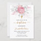 Convite Batismo cor-de-rosa floral menina branca elegante