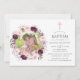 Mão floral violeta, cor-de-rosa-pincel e veludo-fundo pintada com batismo de aquarela, batizando ou dedicando convite personalizável para suas especificidades. É recomendada uma foto em forma quadrada.
