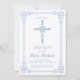 Este elegante e clássico batismo ou convite batizante apresenta uma cruz desenhada de blues e branco com uma fronteira detalhada correspondente. Perfeito para sua ocasião religiosa especial, o texto e a cor de fundo podem ser personalizados de acordo com seu gosto.