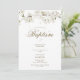 Um convite de batismo ou baptizado elegante que apresenta delicadas flores brancas enquadrando os detalhes do seu batismo ou baptizado em tipografia dourada elegante. Concebido por Thisisnotme©