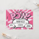 Um divertido, legal e moderno quadrinho rosa inspirou batismo, um convite batizante que coloca o murmúrio, o zap, o poder no evento de celebração do seu super-herói. O inverso apresenta um padrão de bolinhas de quadrinhos e uma bolha de voz correspondentes para detalhes e endereços de eventos adicionais. Projetado por Thisnotme©