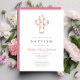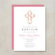 Convite Batismo da Cruz Floral Rosa Personalizada