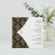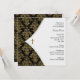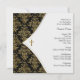 Elegante convite de batismo e batizado de bebe com damasco dourado e cruz preta e dourada. Este elegante designio de batismo branco, preto e dourado serve tanto para menino quanto para menina.