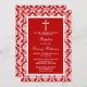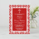 Batismo Cruzado De Damasco Vermelho, Natal Ou Primeiros Convites Comunitários Sagrados. Estes convites podem ser personalizados para qualquer evento sagrado, incluindo Confirmações, Crianças, Comuniões, Batismos e muito mais. Adicione seu texto personalizado usando a seção "Editar este modelo de design" ou clique no botão azul "Personalizá-lo" para alterar o estilo e a cor da fonte ou para adicionar uma foto ou texto extra à parte traseira do convite.