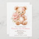 Convite Batismo da Garota Floral de Urso com Urso Floral d