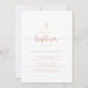 Este convite para o batismo minimalista de caligrafia rosa-ouro é perfeito para um batismo ou batizante de bebê rústico. O design simples e elegante apresenta a tipografia de script clássico e de rico em rosa dourado e branco.