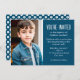 Este 'Blue Latter Day Child Photo Baptism Invitation' é uma forma perfeita de anunciar e celebrar o passo significativo que sua criança está tomando no caminho do pacto. O lado direito comunica elegantemente os detalhes do convite em texto branco claro contra um fundo azul-oceânico profundo ao lado de uma foto do futuro membro da igreja. A parte traseira do cartão mostra um padrão polka-dot azul e branco lúgubre, adicionando um toque de espiã ao design. Ideal para cartões físicos e downloads digitais, este na moda e este convite personalizável dão o tom para uma celebração significativa. Que a jornada comece com estilo e graça enquanto você convida os entes queridos a se juntar à sua celebração de fé e amor.