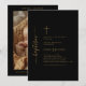 Anuncie o dia especial do seu bebê com este Convite para Batismo Fotográfico Neutro de Gênero Preto e Dourado. Com tipografia elegante e caligrafia balnear, esta design moderna combina com garotos e meninas. Perfeito para um batismo católico rústico em um estilo simples.