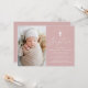 Os simples convites para batismo apresentam um roteiro casual de caligrafia branca com fundo rosa empoeirado para um design que é perfeito para um batismo moderno para bebês. Personalize os convites elegantes do batismo com a foto, o nome e os detalhes do evento religioso do seu filho. O convite para o batismo fotográfico proporciona espaço para texto e fotos adicionais. Este elegante convite para o batismo de rosa empoeirado é perfeito para as meninas!