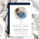 Convite Batismo de Fotografia do Elegante Marinho Blue Scr