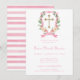 Este adorável convite floral cor-de-rosa para o batismo floral seria perfeito para convidar família e amigos para o batizado do seu doce bebê. Ele tem uma crista de aquarela cor-de-rosa com uma cruz dourada cercada por verde e rosas, seu primeiro nome de alegria, e uma cor d'água cor-de-rosa coordenada riscada para trás. É único e precioso como o seu bebê.