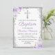 Convite Batismo de Garota Floral Roxa Elegante