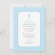 Convites simples e doces de batismo apresentam uma cruz azul e um design de borda escalpada azul-claro. Personalize com o nome, o serviço e a redação de celebração do bebê.