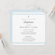 O convite para o Batismo dos Modernos Elegance Boys é um convite moderno e limpo, com listras azuis pastéis e uma cruz mínima com texto de cinza editável.