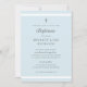 O convite elegante ao batismo clássico é um convite moderno e limpo, com listras azuis pastéis e uma cruz mínima com texto de cinzas editável.