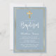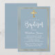 Convite Batismo Dourado Cruz Azul Dusty com Script Moderno