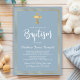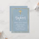 Convite Batismo Dourado Cruz Azul Dusty com Script Moderno