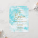 Convite para batismo elegante, minimalista e moderno, com fundo azul de aquarela, falsa cruz de folha de ouro e manchas de ouro com letra simples e moderna.