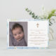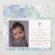 Convite Batismo Dourado de Cristo Azul Elegante Foto: Cros