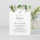 Este convite para o batismo glorioso tropical é perfeito para um batismo ou batizante moderno para bebês. O design apresenta ouro de aquarela pintada à mão e palmeiras verdes e folhas de bananeiras com flores cor-de-rosa bem organizadas em belos buquês.