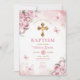 Batismo Dourado Flores de Borboleta Rosa Convite