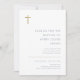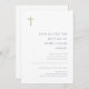 Convite Dourado mínimo moderno para batismo cruzado com simples tipografia. Clique no botão editar para personalizar este design com seus detalhes.